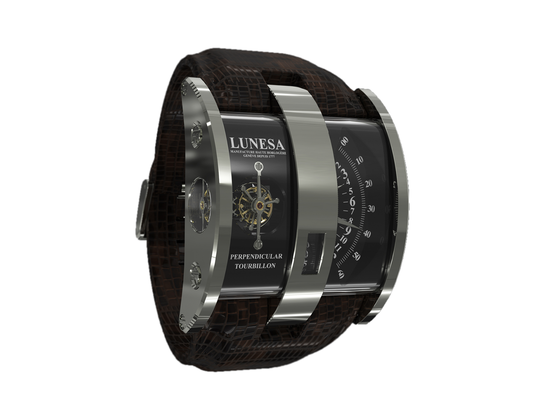 PRODUCT DETAILS:Ref: L500032PT 4655-26/4817Mechanical manually wound movementCaliber L26TOPerpendicular tourbillonSecond indication by wheelRetrograde hour and minuteGold dialSapphire-crystalCase is humidity, dust and water resistant protectedCase in white gold and sapphireCase diameter: 48 mm x 56 mm MOVEMENT:Mechanical manually wound movementCaliber L26TOPerpendicular tourbillonRetrograde hour and minuteDiameter: 46.00 mm x 38.17 mmJewels: 37Power reserve: 60 hoursVibrations/hour: 21 600 (3 Hz)