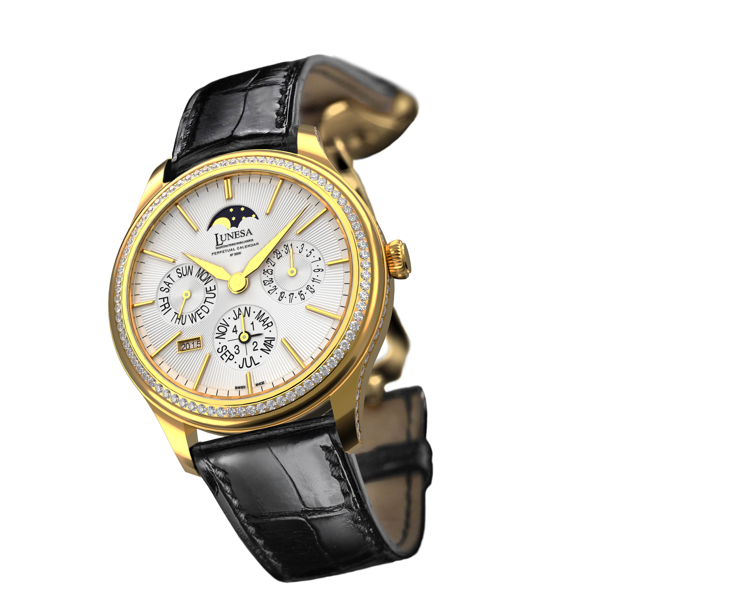 PRODUCT DETAILS:Ref: L500066RG 3942-484/3782Mechanical self winding movementCaliber L484PCPerpetual calendarDay, date, month and leap year indication by handYear indication by windowMoon phases indicationGold dial, gold applied hour markersCase set with 88 diamonds (~1.42 ct.)Sapphire-crystalCase is humidity, dust and water resistant protectedCase in goldCase diameter: 37 mm MOVEMENT:Mechanical self winding movementCaliber L484PCPerpetual calendar: day, date, month, leap year and moon phasesDiameter: 26 mmJewels: 25Power reserve: 48 hoursVibrations/hour: 28 800 (4 Hz)