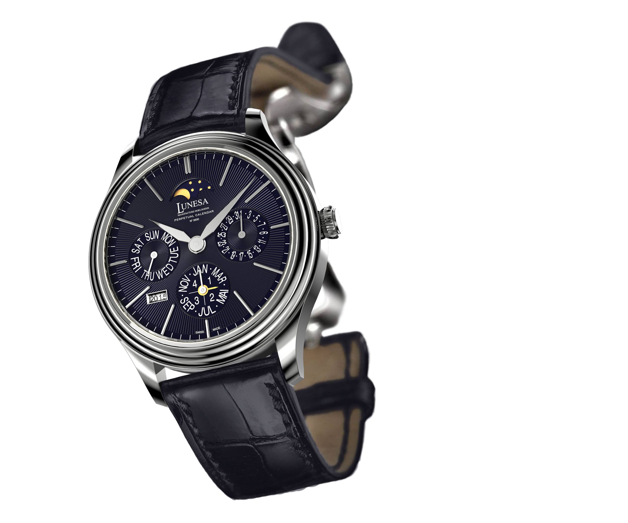 PRODUCT DETAILS:Ref: L500066WG 3601-484/3782Mechanical self winding movementCaliber L484PCPerpetual calendarDay, date, month and leap year indication by handYear indication by windowMoon phases indicationGold dial, gold applied hour markersSapphire-crystalCase is humidity, dust and water resistant protectedCase in white goldCase diameter: 37 mm MOVEMENT:Mechanical self winding movementCaliber L484PCPerpetual calendar: day, date, month, leap year and moon phasesDiameter: 26 mmJewels: 25Power reserve: 48 hoursVibrations/hour: 28 800 (4 Hz)