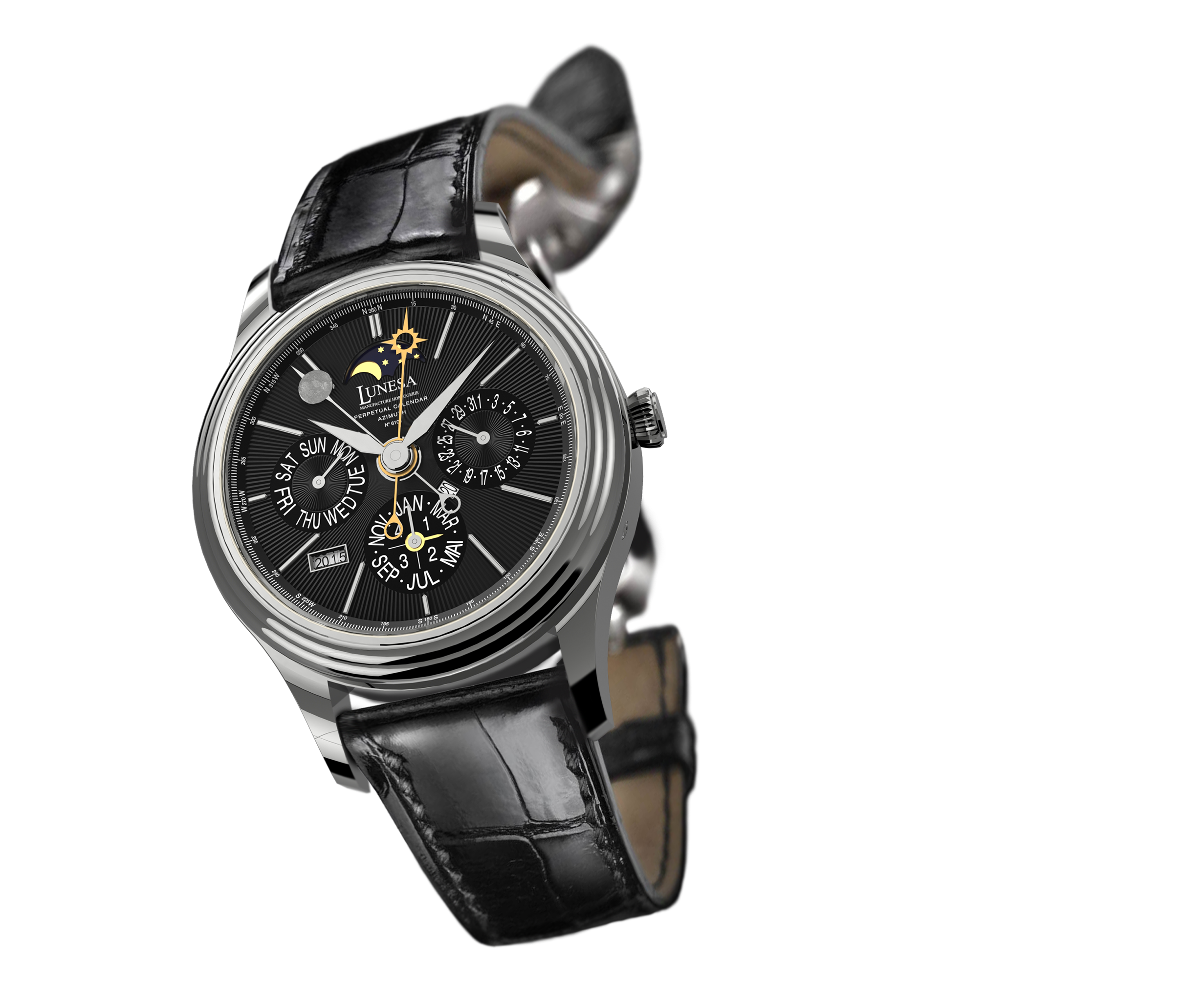 PRODUCT DETAILS:Ref: L500067WG 6100-486/371035Mechanical self winding movementCaliber L486PC APerpetual calendarDay, date, month and leap year indication by handYear indication by windowMoon phases indicationAzimut (moon and sun) indication by handGold dial, gold applied hour markersSapphire-crystalCase is humidity, dust and water resistant protectedCase in white goldCase diameter: 37 mm MOVEMENT:Mechanical self winding movementCaliber L486PC APerpetual calendar: day, date, month, leap year and moon phasesDiameter: 26 mmJewels: 25Power reserve: 48 hoursVibrations/hour: 28 800 (4 Hz)