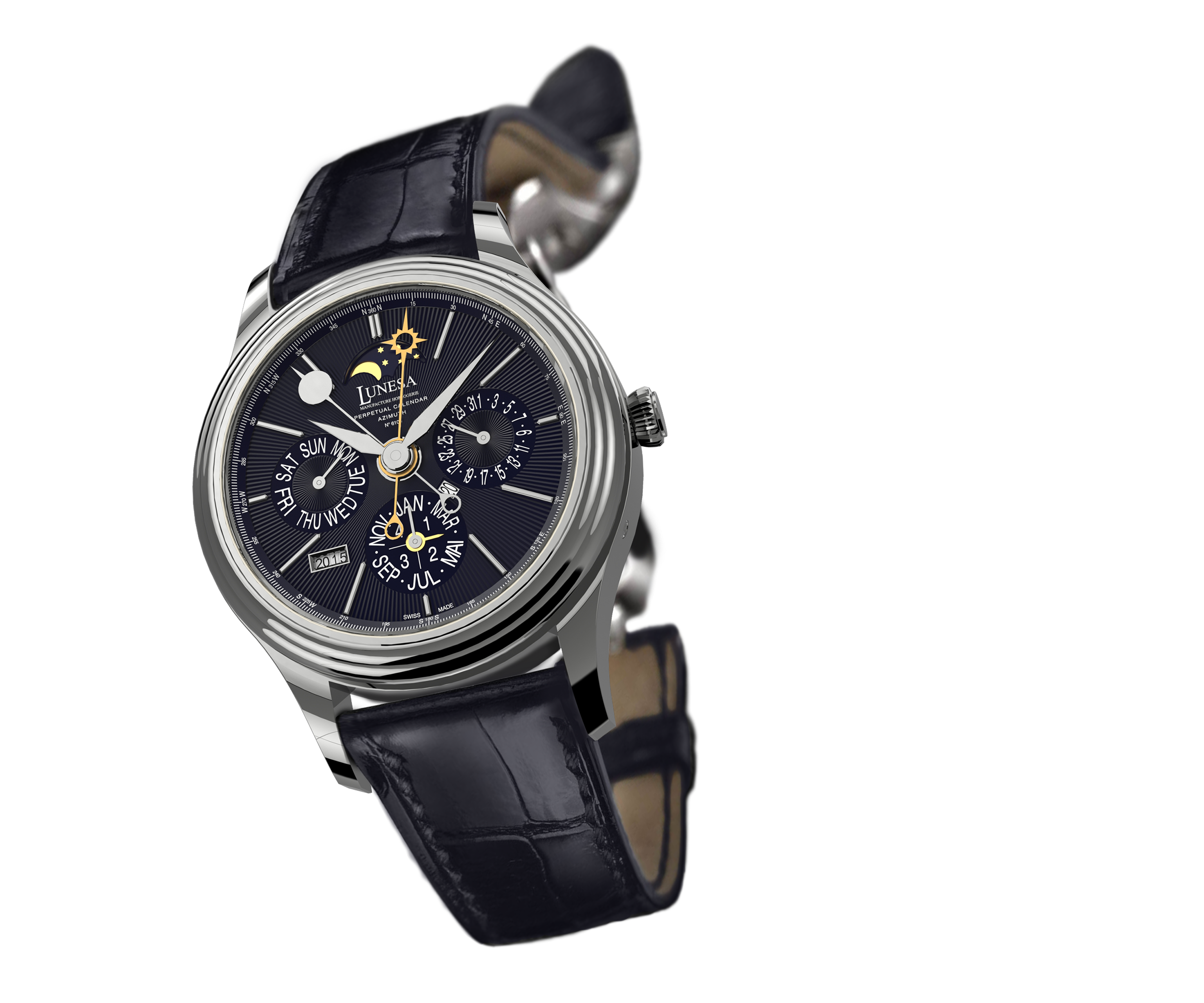 PRODUCT DETAILS:Ref: L500067WG 6211-486/371035Mechanical self winding movementCaliber L486PC APerpetual calendarDay, date, month and leap year indication by handYear indication by windowMoon phases indicationAzimut (moon and sun) indication by handGold dial, gold applied hour markersSapphire-crystalCase is humidity, dust and water resistant protectedCase in white goldCase diameter: 37 mm MOVEMENT:Mechanical self winding movementCaliber L486PC APerpetual calendar: day, date, month, leap year and moon phasesDiameter: 26 mmJewels: 25Power reserve: 48 hoursVibrations/hour: 28 800 (4 Hz)
